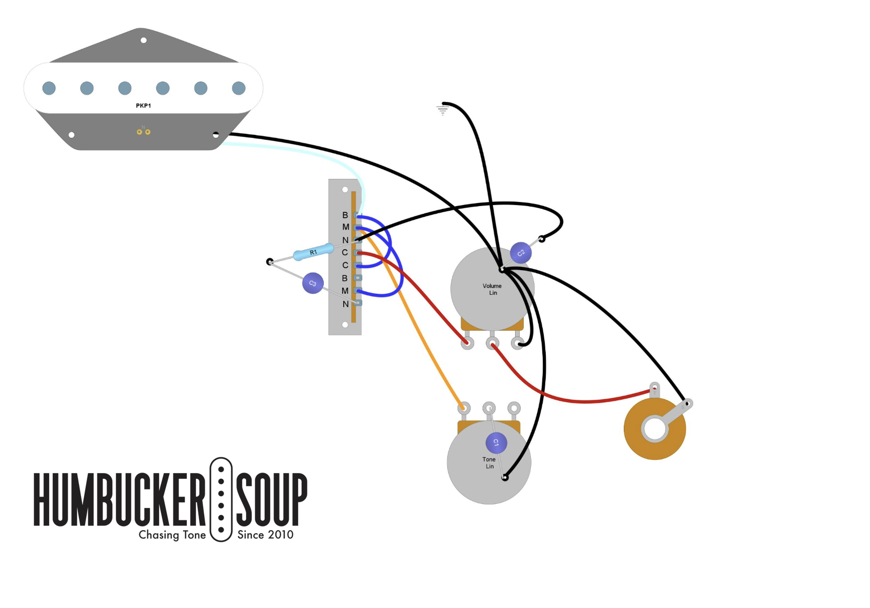 Hello Theo, thanks for reading Humbucker Soup and thanks for the great question. It looks like you are looking for a standard Fender Esquire wiring diagram that uses a Korean 3-way switch instead of the common 3-way switch we see in most guitars.