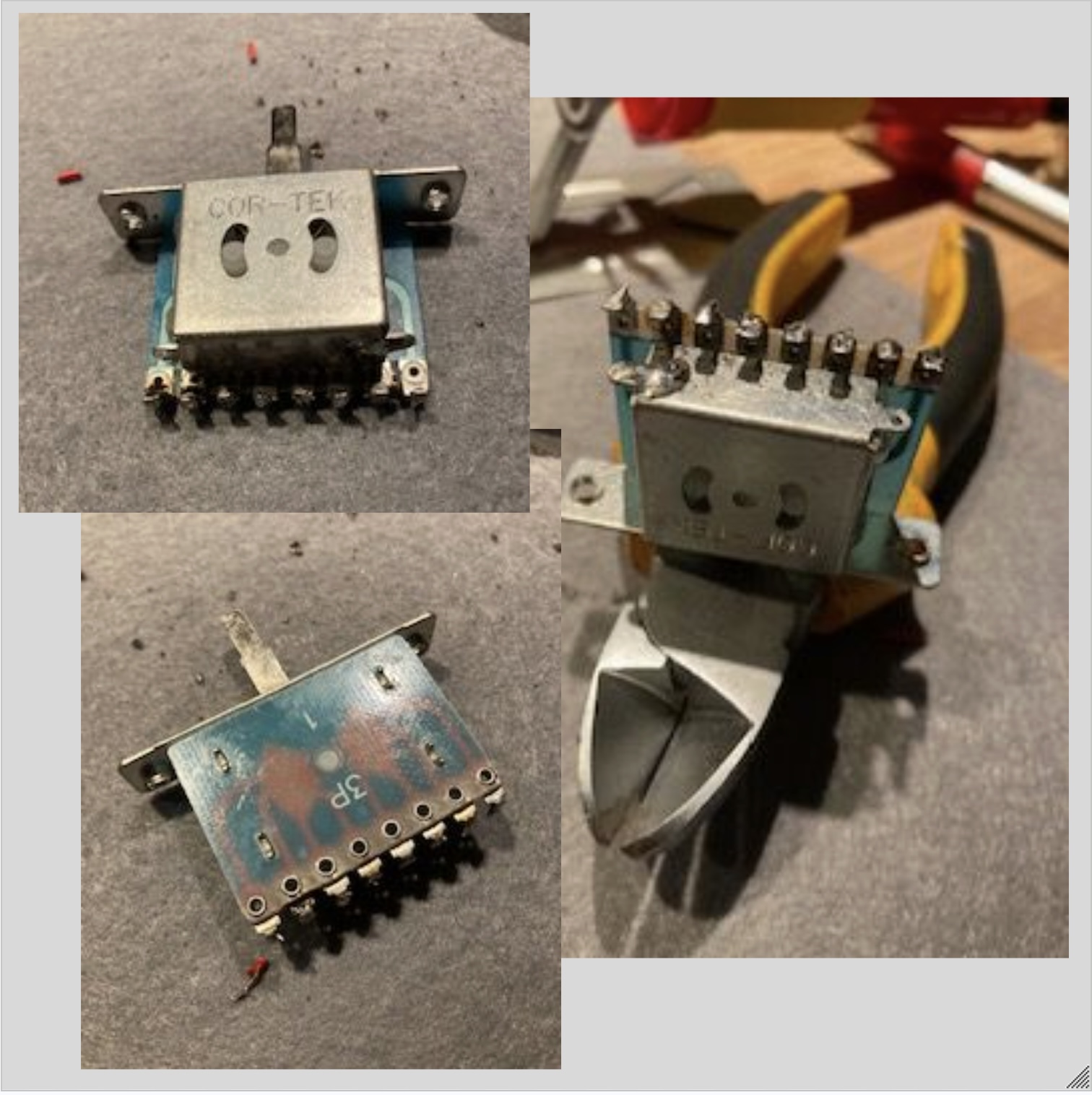 I’m currently modifying a Squire Tele into an Esquire and I try to you use the Korean 3-way switch. Unfortunately, the soldering lugs are all on the same side. Puzzling!!